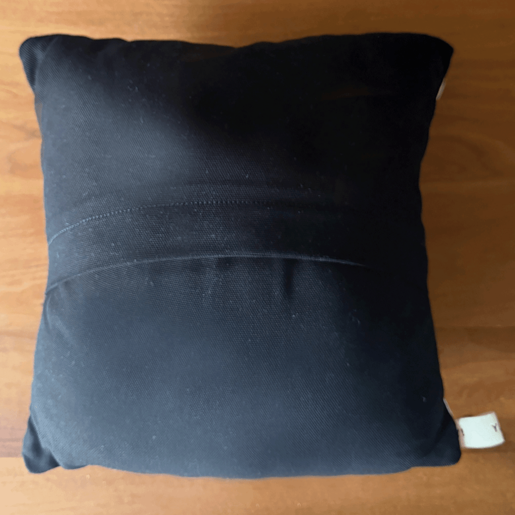 All feature pillow inserts, removable covers and backed with folded black woven twill. Plus a "YAY" tag!