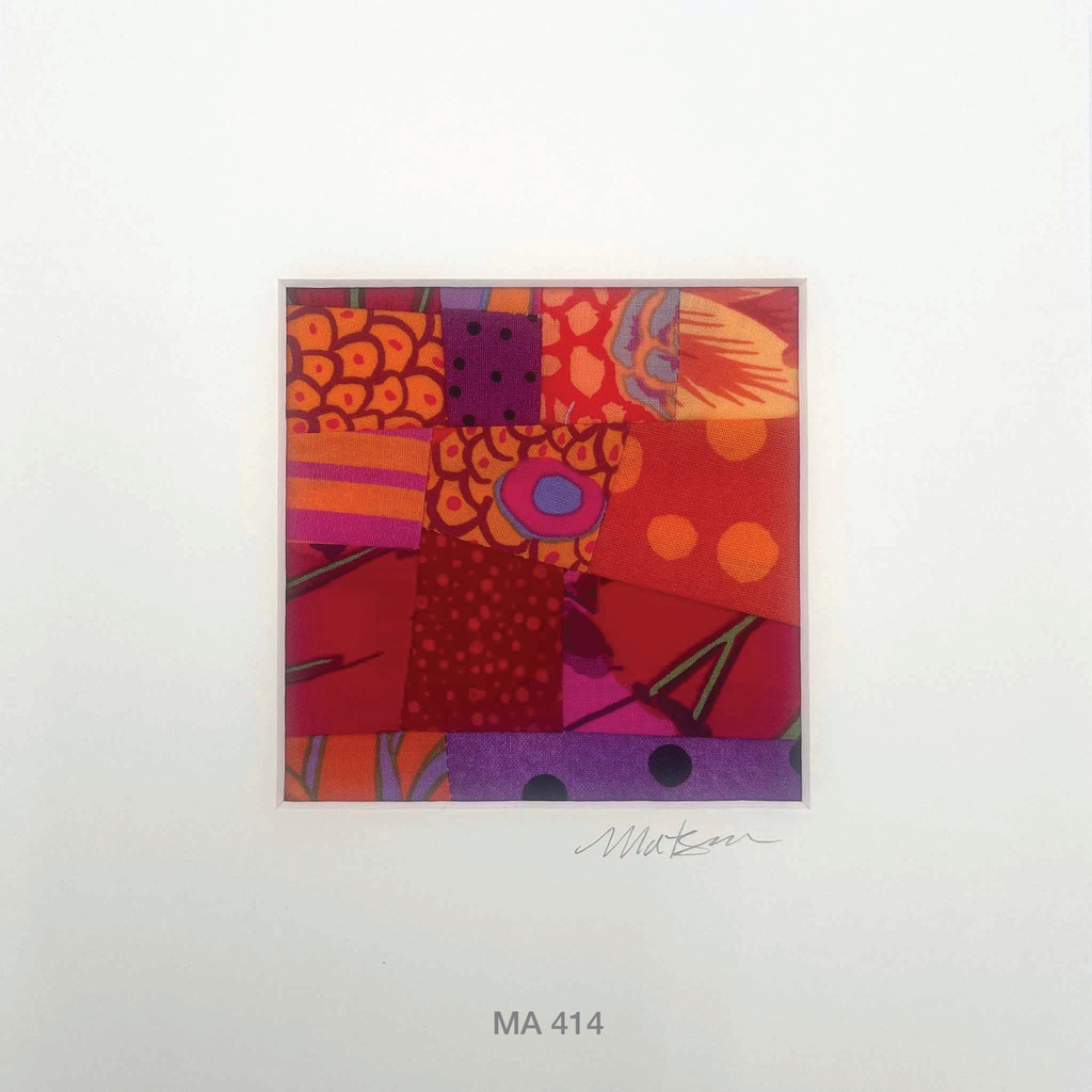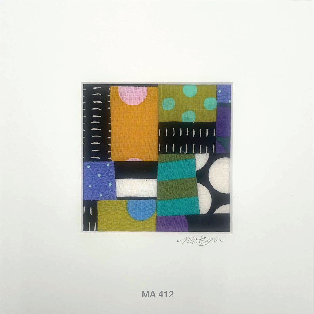 Matted Fabric Collage Artwork, Home Decor, Hand Sewn, Colorful Fabric Art, Abstract